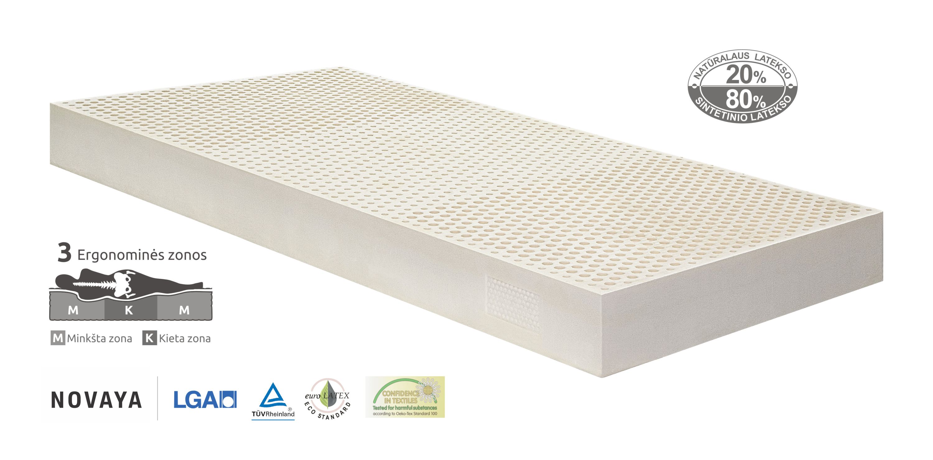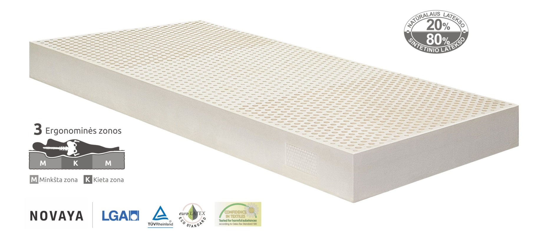 - 90 cm ir 160 cm dydžio čiužiniams naudojami vientisi latekso blokai, 180 cm dydžiui naudojami du klijuoti 90 cm dydžio blokai.